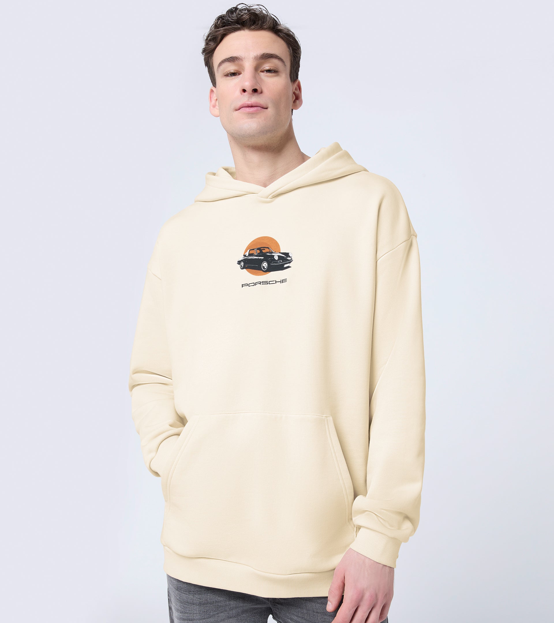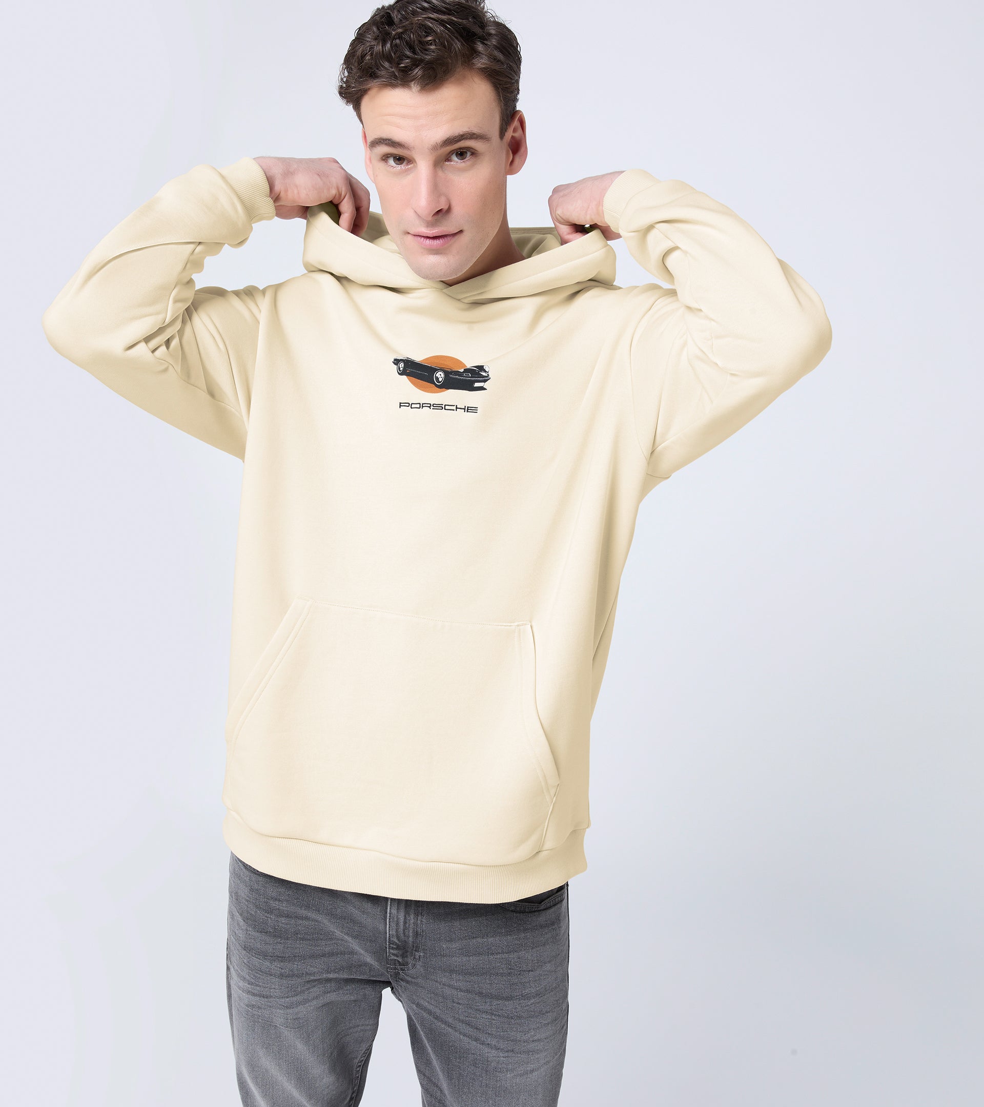 Ce hoodie en coton de haute qualité, au design marqué et robuste, est un incontournable pour les passionnés de Targa. Le dos arbore une grande illustration de la première génération de 911 Targa, inspirée d’une affiche publicitaire Porsche historique de 1967. Le thème est enrichi du lettrage original "Porsche 911 Targa" brodé. À l’avant, un petit imprimé graphique et le mot Porsche brodé viennent ajouter des touches subtiles.