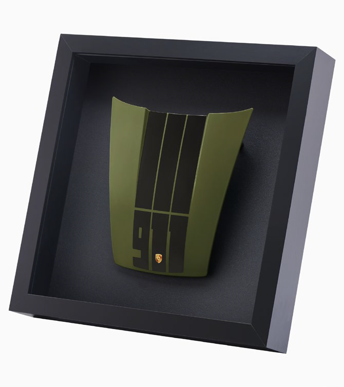 Le modèle réduit exclusif du mini capot 911 Spirit 70 à l’échelle 1:8 séduit par son impressionnant souci du détail et mérite sa place dans toute collection. Son emballage soigné en fait également le cadeau idéal pour tous les passionnés de Porsche. Extérieur en Olive Neo.