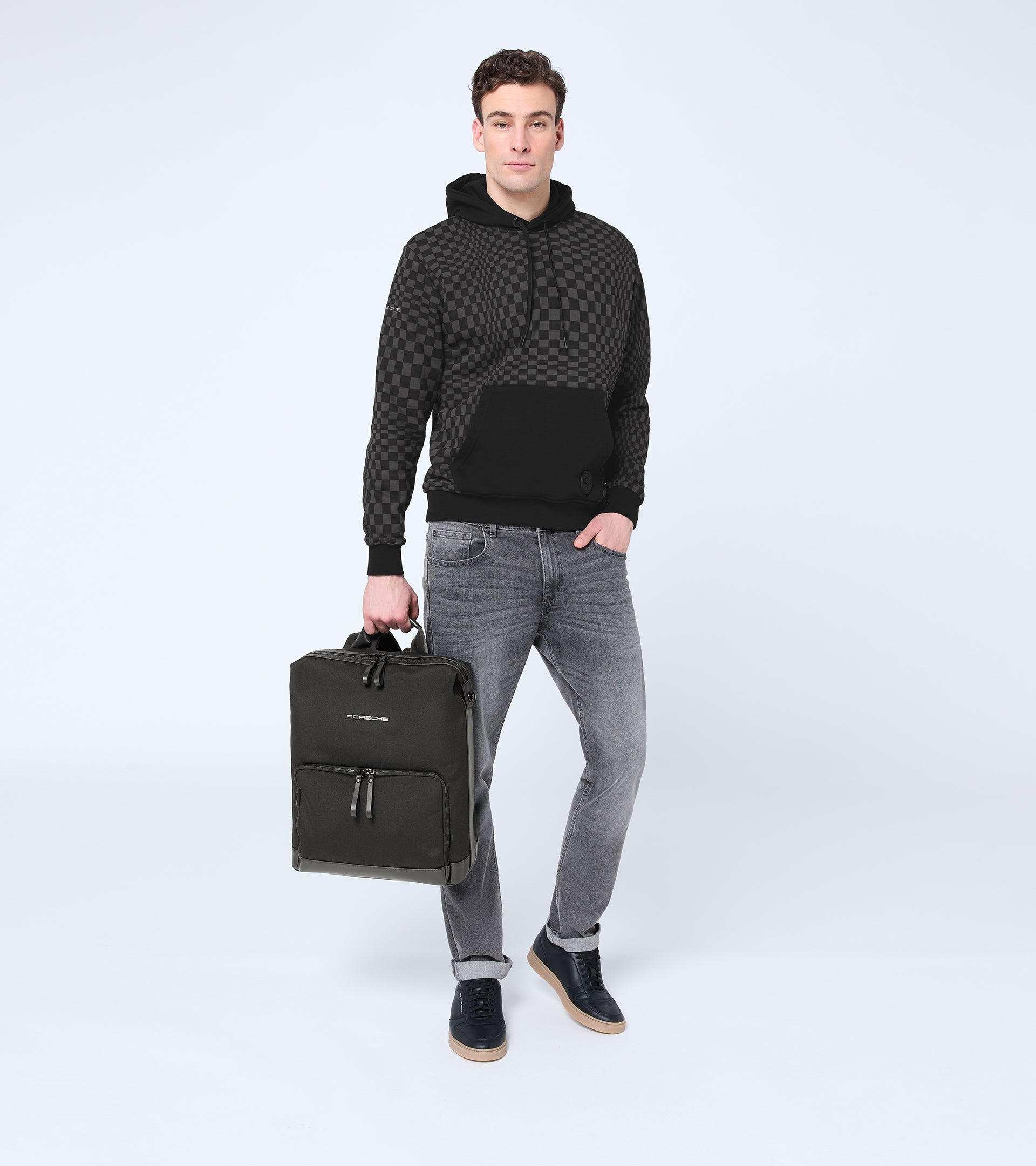 La doublure intérieure séduit par son motif iconique Pascha en Olive-Noir. Un point fort : le volume du sac peut être agrandi grâce à des rabats latéraux ingénieux équipés des boutons Tenax® d’origine des fixations de toit décapotable Porsche. Des détails en cuir de haute qualité sur les poignées, le pourtour de la fermeture éclair et les curseurs soulignent le design raffiné et offrent une agréable sensation au toucher. Le confort est assuré par des bretelles matelassées et réglables.