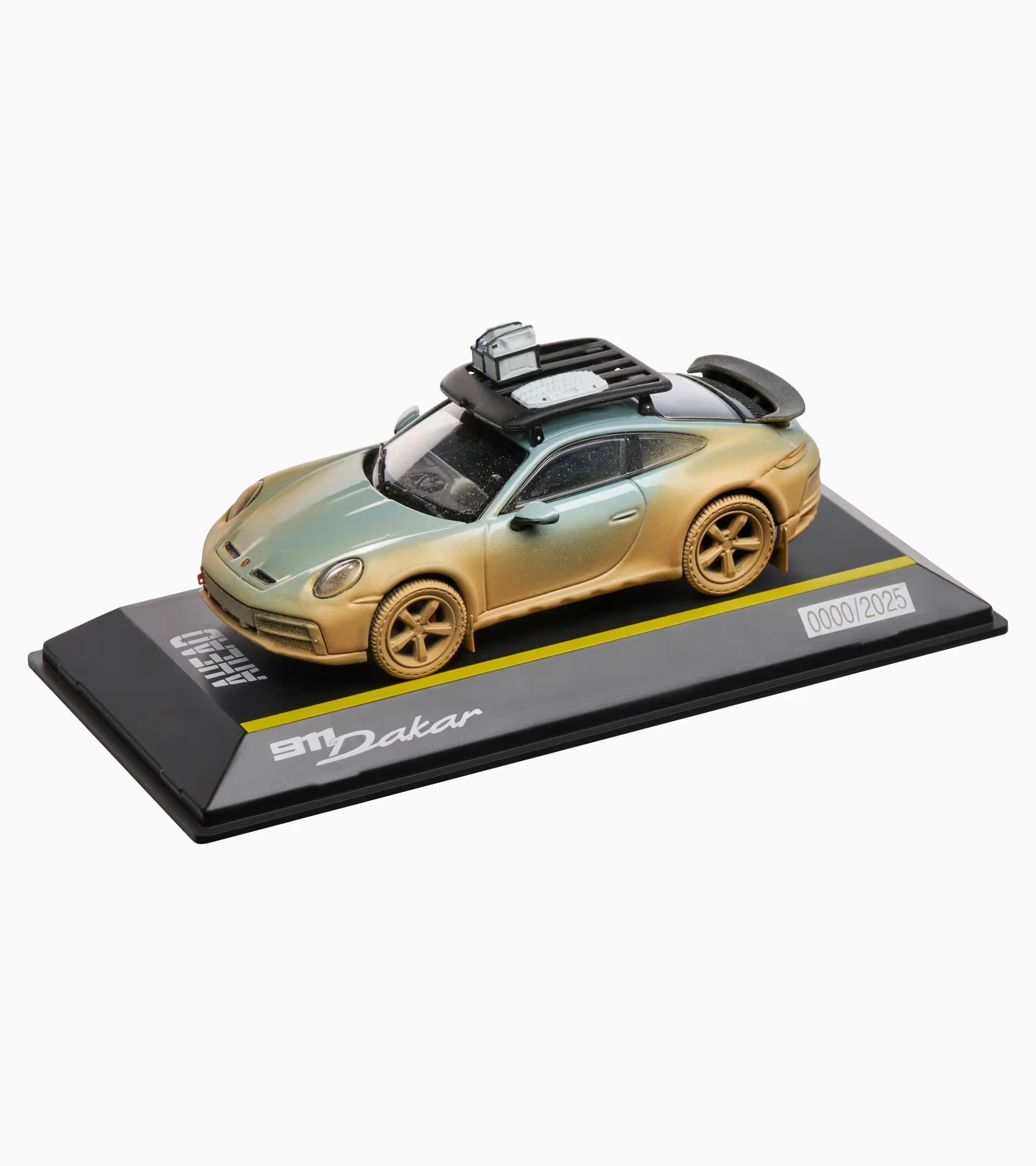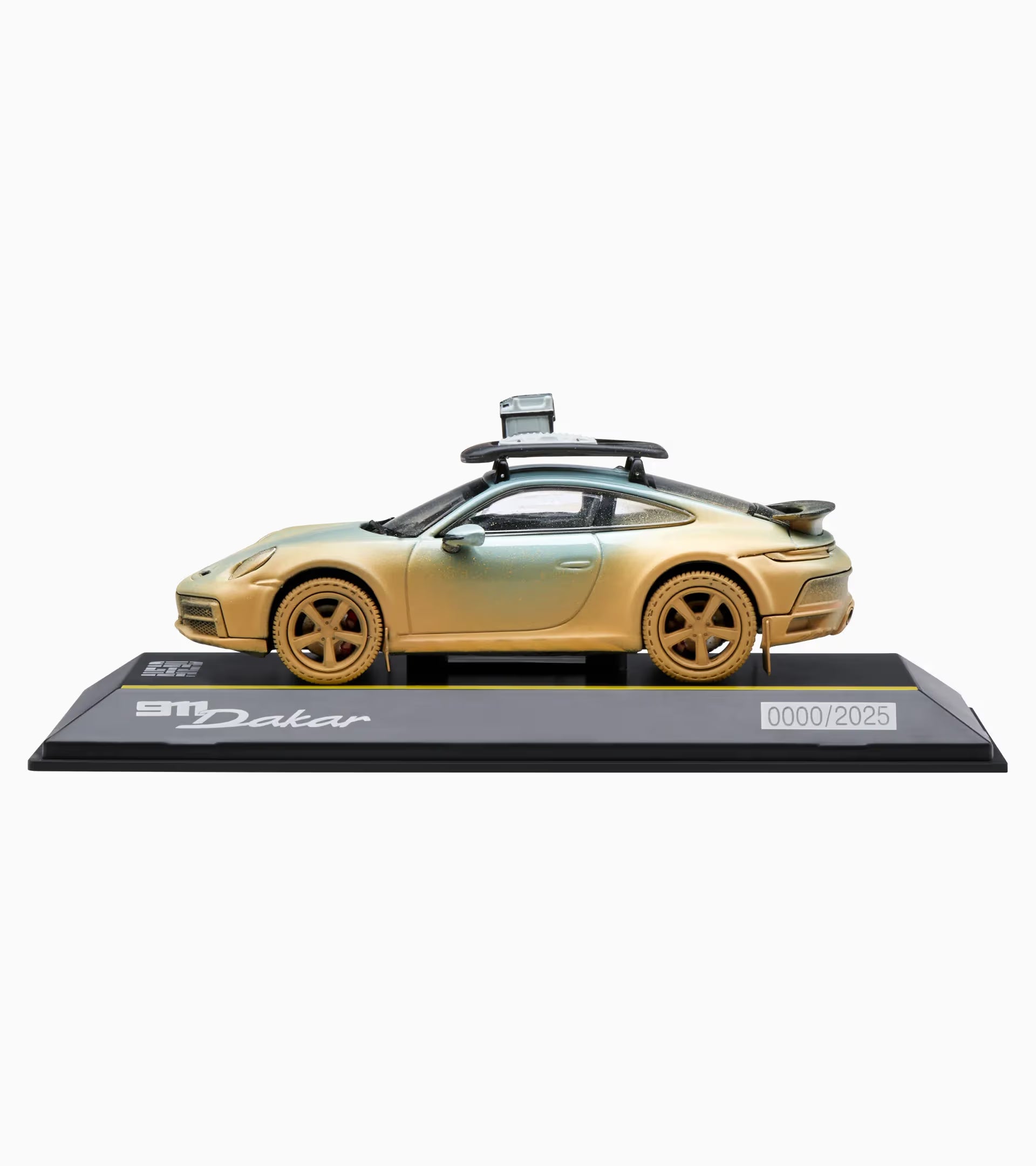 Ce modèle exclusif de la Porsche 911 Dakar (992) AHEAD, réalisé à l’échelle 1:43, se distingue par son souci du détail et constitue une pièce incontournable de toute collection. L’emballage fourni en fait également un cadeau idéal pour tous les passionnés de Porsche. Composé de DieCast. Extérieur en Vert Ombre, intérieur en Noir.