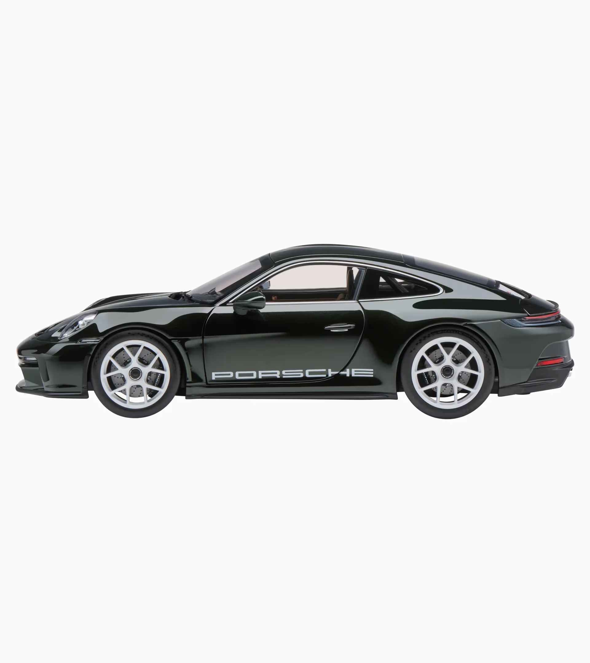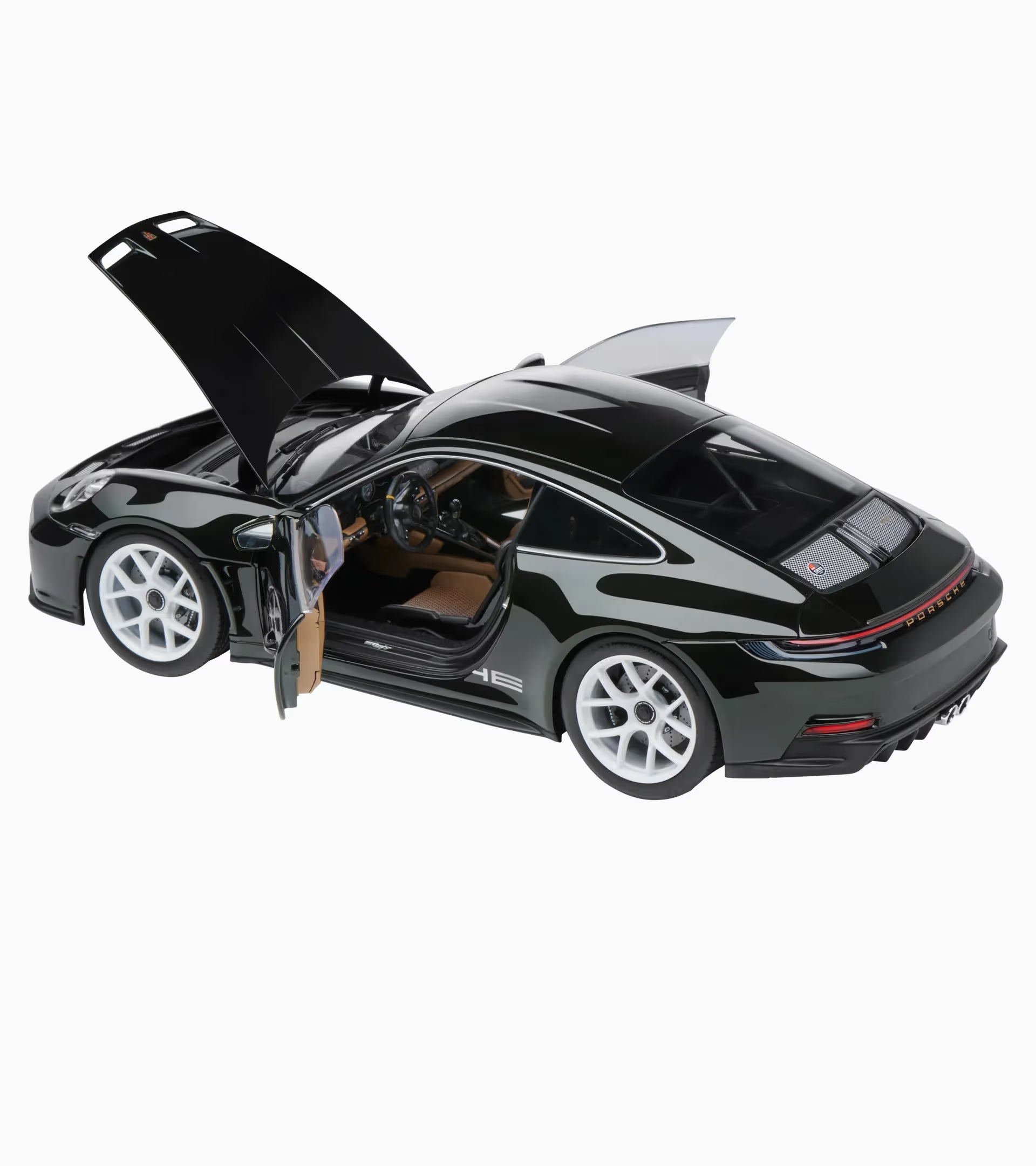 Ce modèle exclusif de la Porsche 911 S/T (992) avec portes ouvrantes, réalisé à l’échelle 1:18, se distingue par son souci du détail et constitue une pièce incontournable de toute collection. L’emballage fourni en fait également un cadeau idéal pour tous les passionnés de Porsche. Composé de métal moulé sous pression. Extérieur en Olivegreen, intérieur en Cognac.