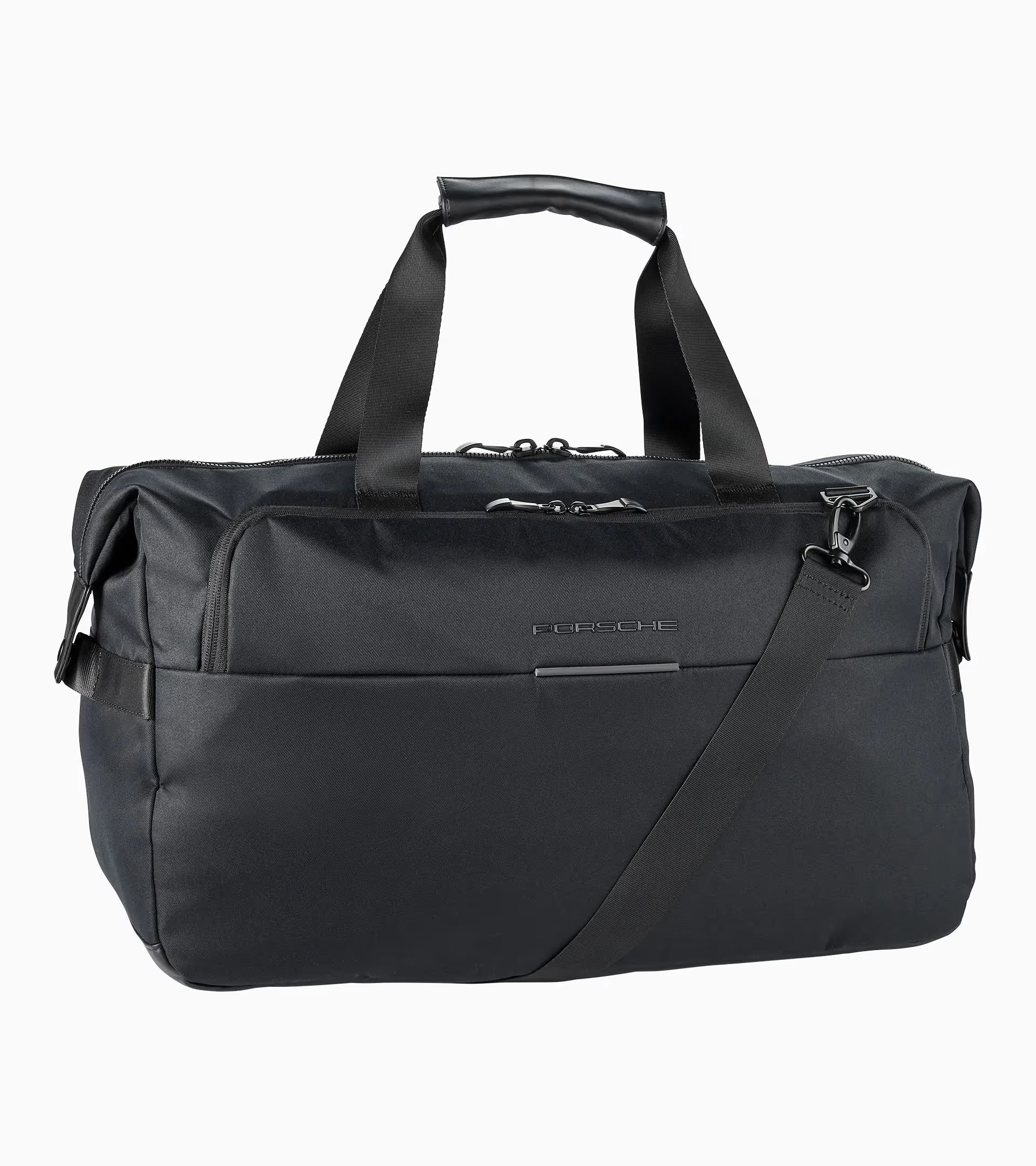 Rencontre du minimalisme et de l’élégance : la collection Essential au design épuré traduit l’esprit Porsche dans sa forme la plus absolue. Le sac week-end imperméable en sergé recyclé allie légèreté et fonctionnalité. Son design uni intégral, accentué par l’inscription Porsche en caoutchouc, une languette réfléchissante et des tirettes de fermeture à glissière inspirées des culbuteurs Porsche d’origine, se démarque visuellement. Le grand compartiment principal peut être élargi des deux côtés grâce à des boutons-pression. Tous les objets de valeur se dissimulent en toute sécurité dans la poche zippée avec protection RFID sur le devant et la poche en filet à l’intérieur. La bandoulière amovible de longueur réglable, les deux poignées de transport et la fixation pour valise trolley assurent un confort de port optimal en voyage.